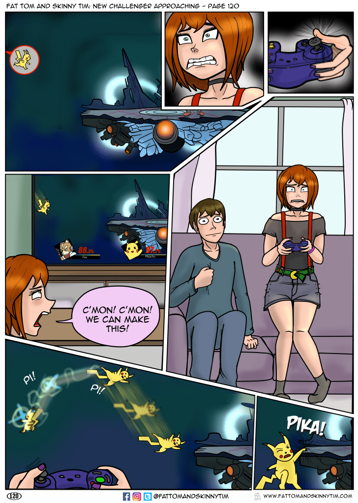 New Challenger Approaching Fat Tom and Skinny Tim: New Challenger Approaching – Page 119 August 18, 2023 AuBurn-Ink Leave a comment Annie out here doing the Beat Terra in Smash speedrun. Read the whole story here: https://fattomandskinnytim.com/nca/